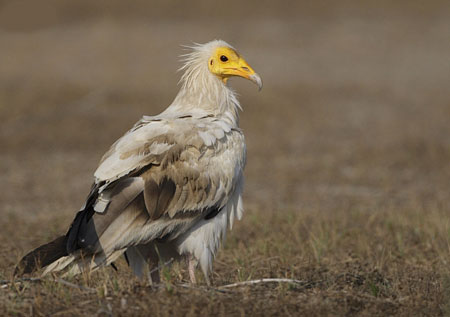 Description : They are also called the white scavenger vulture or pharaoh's chicken, is widely distributed from the Iberian Peninsula and North Africa to India. They feed mainly on carrion but are opportunistic and will prey on small mammals, birds, and reptiles. They also feed on the eggs of other birds, breaking larger ones by tossing a large pebble onto them. Females may sometimes associate with two males and all three help in raising the brood.