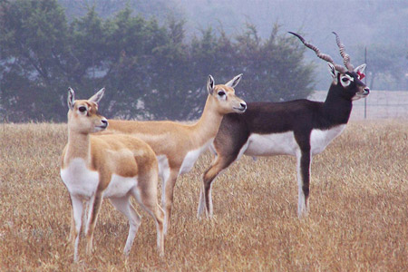 Description :The blackbuck is an ungulate species of antelope native to the Indian subcontinent, found in semi desert plains or grassy plains and open forest throughout India. Blackbucks graze in herds. They are herbivores and diet consists mostly of grasses. Sexual dimorphism is prominent, as males are heavier and darker than the females.