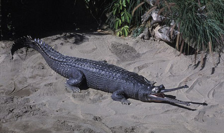 Description :They are found in the rivers of Indus, Ganges and Brahmaputra. They favour deep, fast-flowing rivers with relatively clear water, high banks, deep pools, and sandbanks for basking and nesting. Gharials are mainly fish eater, although they also take shrimps, crabs, and frogs. The flattened snout is very efficient when sweeping and snapping sideways in the water at prey such as fish.