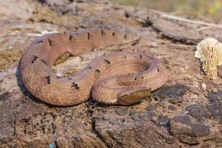 Description :Hump nosed pit viper is a venomous species endemic to India and Sri Lanka. They are found in dense jungle and coffee plantations in hilly areas. They are active during early morning and night. It is now considered highly venomous. It is a slow mover; capable of fast strikes.