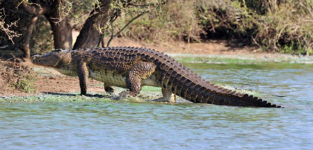 Description : The Nile crocodile is an African crocodile, the largest freshwater predator in Africa. They are one of the largest freshwater crocodile, lives in different types of aquatic environments such as lakes, rivers, swamps, and marshlands; occasionally inhabits deltas and brackish lakes. Their diet consists mostly of different species of fish, reptiles, birds, and mammals.